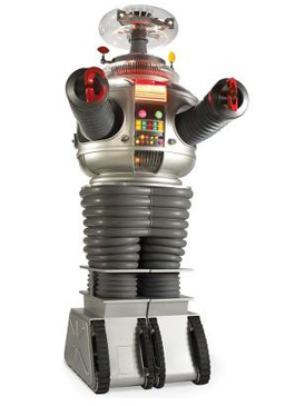 1.) Environmental Robot B-9, alias "Robot" from TV's Lost in Space (1965–68) A night shot of B-9 crackling lighting bolts from his claws shows that this robot was no metal stooge—despite his prime directive to play straight-bot for the George Sanders–like Jonathan Harris. He could have fried the Robinsons any time he felt like it. He just didn't feel like it. B-9 ("benign" I guess) appealed to the intellectuals by playing chess, singing opera and reciting Shakespeare. Voiced by Dick Tufield (who played the part even in the lousy Akiva Goldsman movie), Robot's pregnant silences were as mesmerizing as his hackles-raising rasp of "Danger! Warning!"
