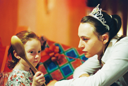 Batya finds another friend: a mute, mysterious little 5-year-old girl in a bathing suit and with a donut-shaped pool float, who attaches herself to the waitress. This lost child might have been too much like the dancing baby in Ally McBeal, but the role is unsweetened by Niokol Liedman. If she's like a red-haired sea nymph, she's also a little like a goblin. When she runs off, the general description of her is that "she has sad eyes"—pretty useless in a film where everyone does. And when Batya reports the motherless child to the police, she opens another window of dejection: the sad-eyed desk cop fans out a stack of unfollowed-up missing-person reports and mutters, "Look. There isn't even a folder."