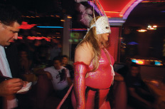 "Hola Mamasita!" exclaims Perla, the chubby-cheeked cross dresser who collects the $12 cover at the door and exchanges cheek kisses with one patron after another. They climb a flight of steps with their long legs, pass a condom giveaway and sashay across the dance floor to a curtained area past the bar, where the transformation occurs.