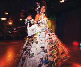 Recycle this newspaper: Scissors, paste and a stack of Metros were all it took for Alfredo Hernandez and a friend to fabricate this stunning outfit.
