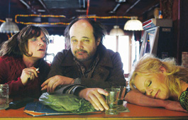 Item No. 2: Joachim Trier's Reprise (May 8, 9:30pm). Two spiritual great-grandchildren of Knut Hamsen seek literary fame in Oslo. The ghost of punk rock haunts Erik and Phillip, the two best writers in a small gang of snarky artistic benchwarmers. The shaven-headed Phillip publishes a first book, finds true love and promptly has a spectacular nervous breakdown. Seeing this lesson in the consequences of literary success naturally scares Erik silent. He is blocked by a number of other factors. One seems to be his love of rock itself: these boys quote Wittgenstein's line that the really important ideas are communicated with music, not words. And the writer they both worship also suggests that literary effort is futile; he's a fictional Norwegian version of Thomas Pynchon.