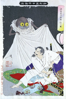 Tsukioka Yoshitoshi's 1892 print 'Minamoto no Yorimitsu Striking at the Ground Spider' will be part of the Cantor Arts Center summer show