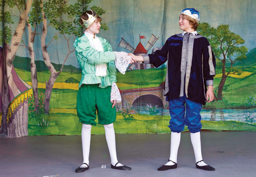 ROYAL RUMBLE: Prince Dufess (left, Adri Austin-King) and Prince Noble (Greg Herzl) shake on it in 'Rapunzel,' a Palo Alto Children's Theatre presentation, playing June 18-27.