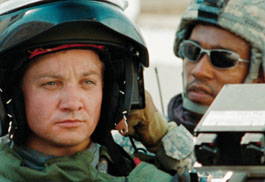 Renner's side-cropped hair, his self-assuredness and the high-arched armor around his neck make us think of Henry V. The Hurt Locker takes a knightly view of the war, of men suiting up and closing their visors. Thus this is the first Iraq film an American audience can feel good about. The quality must have something to due with the film's popularity and praise. An absence of politics doesn't make a film apolitical, and that's why it's said that silence equals consent. The Hurt Locker's soldiers are in the right, fighting a defensive war against mad bombers. One final assignment, in the flaming ruins of a massive explosion, is certainly meant to recall the World Trade Center. The film's one line about how a bad experience with U.S. soldiers can turn a man insurgent is almost window dressing. Boal's script discovers the hollow inside the brave James: the missing part that made him never stop to realize why he did his job. That final revelation is smart filmmaking. It's just that the hollow inside this movie—inside almost all the war movies, even the good ones—isn't as easily seen. If war is a drug, as this movie claims, who's pushing it?
