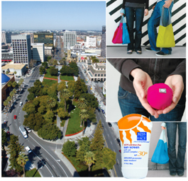 PLAZA DE CESAR CHAVEZ PARK: Make a day of it in San Jose with locally made Flip and Tumble shopping bags and paraban-free Kiss My Face sunscreen.
