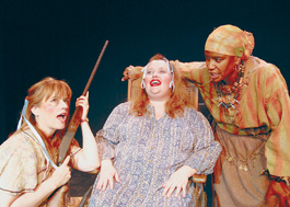 This production puts ideal music in the right place at the right time, from longing country ballads to stompin' banjo jams. During the love scene, a roll in the wood chips intensifies to the escalating arc of the music, like a dance. Sanders could have provided more tension around Moses' climactic act instead of relying on the nature of the act to move us, but The Sugar Witch focuses less on the characters' motivations than on the state they're in. And the action takes us to a sinking, moody climax. I should probably add that the play Witch embraces gay/lesbian themes as heartily as anything you'll get south of San Francisco.