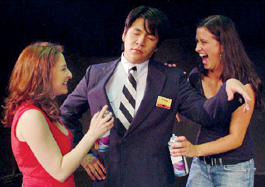 As the play examines intimacy and honesty on the palette of love, most scenes unfold around relationships of two—Adam and Evelyn, Jenny and Phillip, Adam and Chuck and so forth. But the intimacy of the pairs only breeds entangling alliances among the four, resulting in humor and lots of conflict. The truncated phrases in Neil LaBute's script require the smoothest, fleetest timing, and after a brief warm-up period, all four performers become very fluid at cut-off, overlapping and wandering speech. Gaoiran makes his Adam utterly endearing; Phelps captures the college-boy nonchalance; Tierney delivers the essence of a girl who's used to getting by on her looks. Their youthful cadences fall out easy and unselfconsciously.