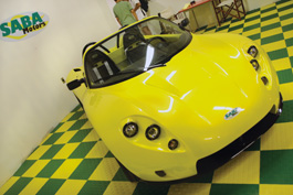 Down the hall from the showroom, in a tiny garage stall that's part of a business incubator, sits a small two-seater that, when finished in a few weeks, will be able to beat both cars off the line. The car is being built by the one-man startup company Saba Motors and is designed to sell for $40,000.