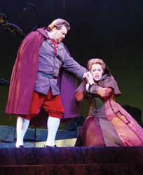 As Anckarstroem's wife, Amelia, the unviolated love interest of the king, Berioli delivered the most vivid characterization of the entire cast, dramatically, emotionally and vocally, though her top was more strident than usual. As Count De Horn, one of the "coup-plotters," Aguilar's vocal authority was as undeniable as his acting was forgettable. (Until Aguilar develops more stage presence, he would make an outstanding concert artist.) In the part of Oscar, the page, soprano Jillian Boye was chirpy and eager throughout, her reedy tone cutting through the vocal mÈlange like a warm knife through butter. (For better or worse, her attempts at appearing to be a boy failed.) As Count Warting (in some versions known as Count Ribbing), baritone Derek Jin substituted for the ailing Kirk Eichelberger.