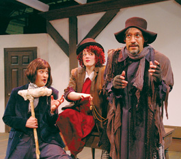 Steal away: Kirk Pierron (left), Robyn Winslow and Rich Miller play Faginesque pickpockets in 'A Christmas Twist.'
