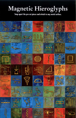We've all seen those ridiculous refrigerator poetry magnets, you know, the ones where you rearrange all the words to make your own sentences, poetry or prose. They even have themed kits for gardener poetry, golf poetry and mixed-up country songs. But everyone knows the finest experiences with these kits emerge when people get drunk at someone's party and then have their way with the words on the refrigerator, only to wake up the next morning and find that their attempts at sentence-forming resemble hieroglyphs more than anything else. Well, why not just use real hieroglyphs instead? Magnetic Hieroglyphs at the Rosicrucian Museum even includes translations.