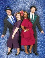Tenor Kevin Cornelius stood out as a soloist, but all the performers fared better on the four- and five-part harmonies and ensemble skits, acting out saucily to "I Get Ideas" and sourly to "A Fine Romance"; swing dancing at "Tuxedo Junction" and tap-dancing to "Fascinatin' Rhythm." The choreography was never challenging, though the tall and lanky bass Mitchell Baker sometimes made it look like it was—all part of the charm here where disbelief is never quite suspended and half the fun is watching the smiles on the faces of the elder half of the audience.