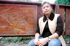 Stumping Against Stumping: Terri Clark with a map of Chemeketa Park, one area that will be affected by San Jose Water's proposal for logging around Los Gatos Creek. Clark is on the steering committee of Neighbors Against Irresponsible Logging (NAIL).
