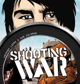 It's 2011. In the White House is a doddering Republican, the aging and bewildered remains of John McCain. The Iraq war is at a temporary stalemate, with Baghdad in a well-catered fully capitalized green zone. Meanwhile, in Brooklyn, Jimmy Burns of the burnbabyburn blog is in the right place at the right time to record the Islamic terror bombing of a Starbucks. Kicked upstairs to cover the Mideast, the Murdochian Global News sends him to cover the Iraq situation. He arrives—with limited resources, untrustworthy security and an irresistible urge to continue his navel-gazing even on the corporate payroll. And that's when the Iraq version of the Tet Offensive breaks out. While critiquing the self-importance of the blogosphere, Anthony Lappe and Dan Goldman's graphic novel Shooting War perpetrates some of the sphere's worst customs: the self-importance, the self-pity, the lazy writing. Sample caption, under a group of dead civilians: "These are the faces of war." Worse, the characters persist in reducing themselves to cultural stereotypes. Another big annoyance is the seriously indifferent quality of the visuals. Artist Goldman combines digitally sampled photographic images with drawings—an unprecedented radical technique that Jim Steranko was doing 40 years ago, only with halftones instead of Photoshop. No one could argue with the research or the well-written mad-scientist speech by the anti-hero. And Shooting War does have a point: Despite the new tech, the actual business of reporting hasn't changed all that drastically. The two collaborators lionize a trustworthy geezer to prove it: Dan Rather. (By Anthony Lappe and Dan Goldman; Grand Central Publishing; 192 pages; $21.99 hard cover)