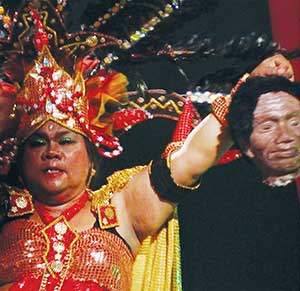 Some of what must have led Alamo Drafthouse to pick up this documentary is the psychotronic aspect: the startlingly corrupt Herman Koto, an obese would-be parliamentarian, thinks he's in a Jodorowsky movie. He playfully pretends to eat a pal's liver. ("Look what I found in your stomach! Ugh! It's rotten!") In Divine-like pink drag, Koto directs a line of depressed chorus girls as they emerge from the maw of a giant metal carp.