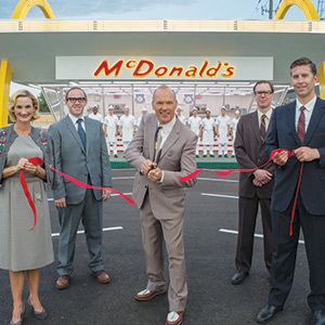 'The Founder' chronicles the man who sold the world McDonald's—Ray Kroc—played by Michael Keaton.Director John Lee Hancock (The Alamo) has gone from Davy Crockett to Ray Kroc—arguably a lesser kind of American hero. Kroc was the burger baron who franchised McDonald's from the original owners, a pair of idealistic restaurateurs from San Bernardino. The McDonalds' "Spee-dee" assembly line method revolutionized the way Americans and a lot of the world eat. Making the Golden Arches an interstate phenomenon, Kroc created the fast food nation we live in today.