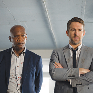 A Charles Grodin-ish Ryan Reynolds is Michael Bryce, a top-of-the-line security person in a shiny suit. He has one bad day involving a client named Kurosawa. Two years later, Bryce is a mook, having to languish in a shabby car in London outside of the latest corporate pickup. (Bryce's package here is Richard E. Grant, who gives five good minutes imitating the terrified Sylvester Pussycat).