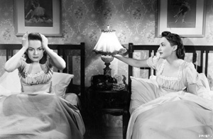 The Dark Mirror (1946; Jan. 25, 7:30pm): Olivia de Havilland plays identical twins—one meek, one malevolent. When a prominent doctor is murdered, one of them must be guilty but no jury will convict because who can tell them apart? Not somewhat hapless psychiatrist Lew Ayres, who is pretty sure he's falling in love with the good twin, nor dogged police detective Thomas Mitchell, who can't stand the thought that the sisters might beat the system. De Havilland does a superb job subtly both differentiating and melding her two characters. Directed with visual flair by Robert Siodmak. The same identical-twins gimmick also turns up in Among the Living (1941; Jan. 23, 3 and 6:15pm) to lesser effect. Albert Dekker plays the two scions of a Southern family: one has led a normal life; the other has been locked in the basement of the family mansion. When the bad twin escapes, a murder rampage follows. Susan Hayward shows up again as the town chippy, and doomed Frances Farmer herself has a small part, but the film is more Universal Horror crossed with bargain-basement Faulkner than it is noir.