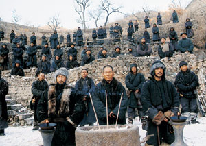 The battles continue the film's postapocalyptic look—it's a gritty modern war with trenches. There's more hit-and-run action in the early sequences, as Pang, Zhang and Zhao's militia falls on a Taiping supply convoy filing through the canyons: bear traps snatch their horses' legs, and the fighters slide down from the cliff tops to finish the slaughter.