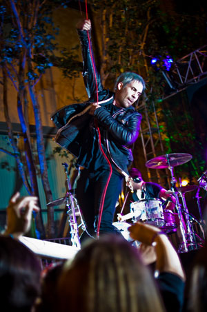 They opened with anthems like "The Future," "Dancing at Her Funeral," and "Very Busy People," with lead singer Eric Victorino bringing screaming conviction to the former and Gio Giusti packing electroclash touches into the latter, while drummer Dino Campanella flat-out pulverized his drums to get an epic beat. While ripping through most of the tracks from their debut album and a few older songs, they also covered New Order's "Temptation" and, in a moment that had to be seen to be believed, Paul Simon's "You Can Call Me Al." ("We just wrote that song this morning," joked Victorino.) By the ending, they had the audience jumping with "Internet Killed the Video Star."