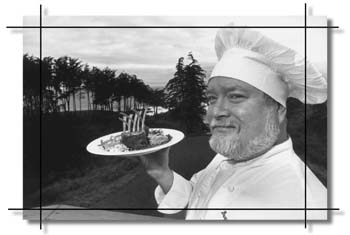 Baaaa to the Bone: Sanderlings Executive Chef Dwight Collins displays one of the his Seascape Resort restaurant's elegant masterpieces, a semi-traditional California cuisine stuffed rack of lamb.