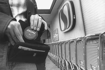 Standing in line, I kept the Skoal can turned face-down on the conveyor belt, hoping that it looked more like a small cake of tofu that way, or perhaps a jar of organic baby food. I was sure that someone would confront me about buying a tobacco product. "What's a young girl like you doing buying chewing tobacco? Don't you know that trash causes cancer of the mouth?"
