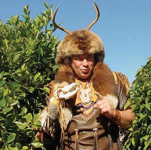 Nüz has seen some pretty strange sights in our time, but even we were a wee bit surprised when a magician named SABRETOOTH showed up in our office decked out in antlers and a beaver-skin hat, from which two bushy fox tails were hanging like a pair of braids. Did we mention he was also carrying a dance stick topped with a coyote skull--a skull that Sabretooth put a muzzle on the minute Nüz picked up our No. 2 pencil?