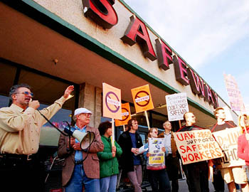 So far Safeway has stated that while health care would be funded at a lower level in its SoCal proposal, this compensation would be within the market range for the SoCal retail sector--an argument that evidently hasn't impressed picket organizer Malcolm Terence of the American Federation of Teachers.