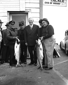 EARL WARREN VISITS SANTA CRUZ, 1946. Based on the response to the last few column historical photos, there should be no problem finding out why Earl Warren visited the wharf. We should also be able to learn who those guys are with the governor. These photos from Covello & Covello haven't been printed for more than 50 years, so let's get the record straight ASAP.