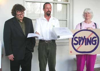 Nobody Likes a Spy: Community members gather to promote civil liberties and the braided goatee.