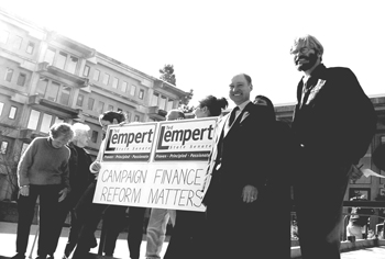 But once Lempert did start campaigning, his equally strong record won him the endorsement of local leaders like Chris Krohn, Katherine Beiers, Celia Scott, Bruce Van Allen, Kathy Bisbee, Ruth Hunter, Julie Conway, Sharon Elerick and Diane Siri, county supe of schools. On the larger election map, he swung the support of the man whose seat he hopes to fill, state Sen. Byron Sher. He also has backing from heavy hitters like state Sen. John Vasconcelles, the Sierra Club, the California League of Conservation Voters, Vote the Coast, the California Labor Federation AFL-CIO, the GLBT Alliance of Santa Cruz, the California Highway Patrol, State Treasurer Phil Angelides and state Superintendent of Schools Jack O'Connell.