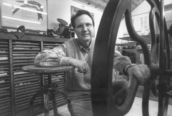 In Young's case, having his own press eventually led him to the literary form he's given himself over to, the prose poem. "I had to write the text for a book called Geography of the Home," he recalls, "and I ended up writing one long line throughout the whole book. I started to think of it as a thread on which I'd strung these pearls of prints. Then I got into the idea of writing poetry horizontally rather than vertically. We're taught that figuratively, you fall through a poem, and I wanted something that guides you through the poem."