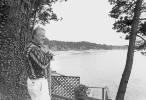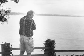 the cliff edge just feet from his plastic deck chair. Out past the broken promontory, the