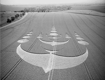 Somehow, in some people's heads, the mystery of crop circles--those beautiful geometric impressions supposedly made by extraterrestrial crop-ruining technology--remains ... well, mysterious. Apparently, large-scale design projects can only be achieved by some higher form of intelligence capable of comprehending strange, otherworldly science known as "geometry." Humans have yet to understand geometry's inner workings, which is why freeway cloverleaf interchanges and city grids are all designed and created by staff aliens working for CALTRANS. Right? Right.