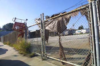 Links to the Future: Behind this trash-covered fence north of Pacific Avenue lies a developer's dream--if someone can clean up the waste below.