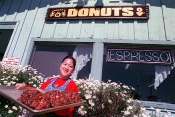 For the best French crullers in the world, it's Tommy's Donuts in Hayward. Fortunately, if your donut jones is whistling for an apple fritter, you have to travel only as far as Pleasure Point to Dunlap's Donuts. Dunlap's has divined the secret to a perfect fritter: a ménage à trois of sugar, gooey dough and fat, with a scattering of apple chunks for texture. For the ultimate fix, take that fritter home and nuke it for about 15 seconds, then slather it with butter. Nothing at Frenchy's Adult Emporium (located right across the street) can top it for twisted, unspeakable pleasure. (3791 Portola Dr., SC; 475.6447)