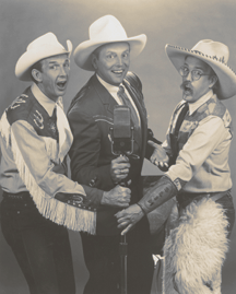 From Rodgers, the yodeling tradition was taken up by a talented second generation, including Ernest Tubbs, Bill Monroe, Grandpa Jones and Hank Snow, and then by a new group of singers--Roy Rogers, Ray Whitley, Gene Autry and Elton Britt--who took it up another notch. "Roy Rogers says that he was the first," Doug says, "and I really have no reason to doubt him. Nothing in my research shows anybody but Roy Rogers doing really tricky things with yodeling, right away, when he was still with the Sons of the Pioneers. And that was one of the hallmarks of the Pioneers, not only their three-part harmony yodeling, but Roy's fancy yodeling."
