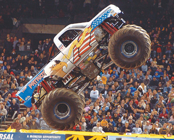 If Dan Rodoni is behind you in the fast lane, you might want to let him pass. While all sorts of people are getting in on the whole patriot act these days, Rodoni's in a league of his own: With 1,500 horses of power, his Patriot is a four-wheel-drive supercharged beast that, despite its mass, catches massive air and crushes everything in its path as it lands. Rodoni's monster truck represented Santa Cruz this weekend during the Monster Jam at the HP Pavilion in San Jose. The 37-year-old Dan Rodoni has been in the world of four-wheel-drive and monster trucks for a while now: he started a local Santa Cruz shop, Central Coast 4 Wheel Drive, which he ran for about 11 years until in '05 he decided it was time to get behind the wheel and drive. Now, in his second year, he and his Patriot have been passing some laws of their own with the help of Phil Foster and the Tropical Thunder, who are also a part of the demolition team. They're currently traveling the West Coast with their crew to a score of venues to compete in head-to-head races and freestyle events, reaching the semis and finals almost every time. (Felipe Buitrago)