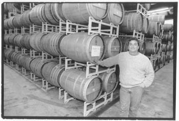 Roll Out the Barrels: Winemaker Larry Gomez shows off the French oak barrels he uses to age his best vintages at Lockwood Winery, south of King City.