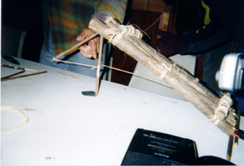 But even more amazingly, I actually understand why I need to know this little morsel of mountain man ingenuity. This is, after all, the kind of thing that can save your life in certain circumstances--if you need to make fire and you're fresh out of Zippo fluid, you can make yourself a bow drill with just wood, your piece of squirrel-hide cordage, and lots of elbow grease.