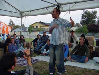 Even students seem puzzled over Tent U's intent. After an evening class at the encampment, first-year biology major FRED MOSQUEDA absent-mindedly asked his classmates, "Is Tent U here because they don't like having classes in buildings?"