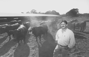 Cowabunga: Natural beef-rancher Bill Niman stands amidst his very contented cows at the pristine, livin'-is-easy Niman Schell feedlot in Petaluma. The cattle lead stress-free lives and are raised on healthful grains--two factors that contribute to their superior quality.