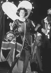 This production is self-consciously stagy--in its performances and, literally, in its design. Andrew Lieberman's set is outfitted much like a traditional stage, with a bright red curtain that runs the length of the stage, flanking an ornate proscenium arch that frames most of the action. Televisions mounted atop the curtains show graphics that act as backdrops for scenes and provide narration with video clips and voice-overs. Though equally showy, B. Modern's costumes ably complement the characters' personalities without upstaging them.