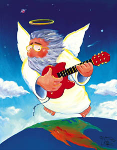 The Ultimate High: Stanley Mouse's portrait of Jerry in the clouds with halo.