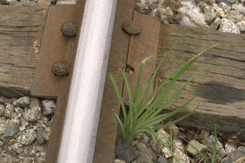 The other workers seemed equally unfazed by the derailment and stood around looking at it as Amy and I checked out the grooves dug in the ground by the wheels and posed for pictures in front of them.