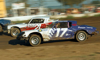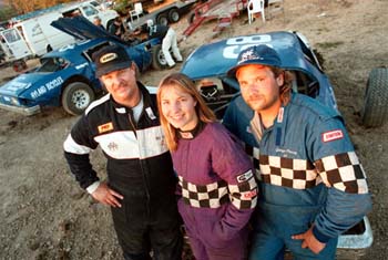 THE ROAR OF CARS zipping around the fairgrounds' quarter-mile clay oval track muffles the announcer's voice as he calls for drivers to line up for the semi-main event. Penney and her father, Bill Hyland, who pits his Camaro next to hers, both miss the first mention of their next race, which is held after the qualifying heats and before the final round.