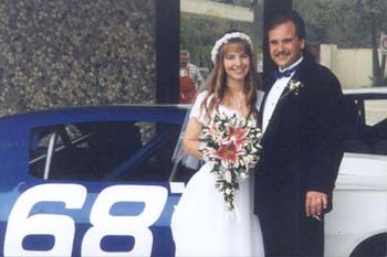 A Stock Car Named Desire: Their classic Camaros brought Melanie and George Penney together, so his race car made a special appearance at their 1998 wedding.