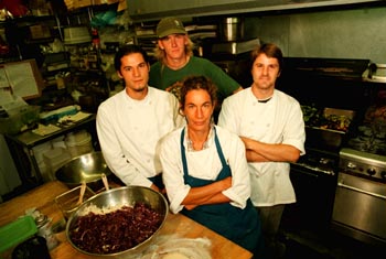 In the Soup: Workers at the five Santa Cruz County New Leaf markets, such as these four at the store's 41st Avenue location, would be most directly affected by the opening of a new Whole Foods. Clockwise from left: Orion Davis, Jason Vergilio, Steven Padalino and Naomi Lieberman.