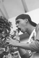 Then comes Berwyn. Berwyn is a town on the southwestern fringe of suburban Chicago. Accordingly, the team comes out like the Bulls--swift, slick and self-consciously bad-assed. Monica Lee Copeland is the literary analog of Dennis Rodman, an event unto herself who sings, shouts, squawks, struts and stomps her way through the team's opening piece, "Burn, Motherfucka' Burn." Daniel Ferri is Bulls coach Phil Jackson. Not just because he's the white guy--and his poetic persona is The White Guy, as in one work which celebrates his discovery of Motown: "Lawrence Welk blindfolded me with a blizzard from his bubble machine"--but because he's the team leader and because, by day, he's a teacher. Tina Marie Wright has the aura and attitude of a second-string rookie, a capable but unremarkable co-star whose poems seem urgent but are forgettable. She is strictly JV.