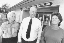 Elder Cares: Joanne Garrison (left), Carl Holmstrom and Kate Arrieta, part of Concerned Members of Mid County Senior Center, have some serious doubts about Redtree Properties' land swap with their Capitola-based organization.